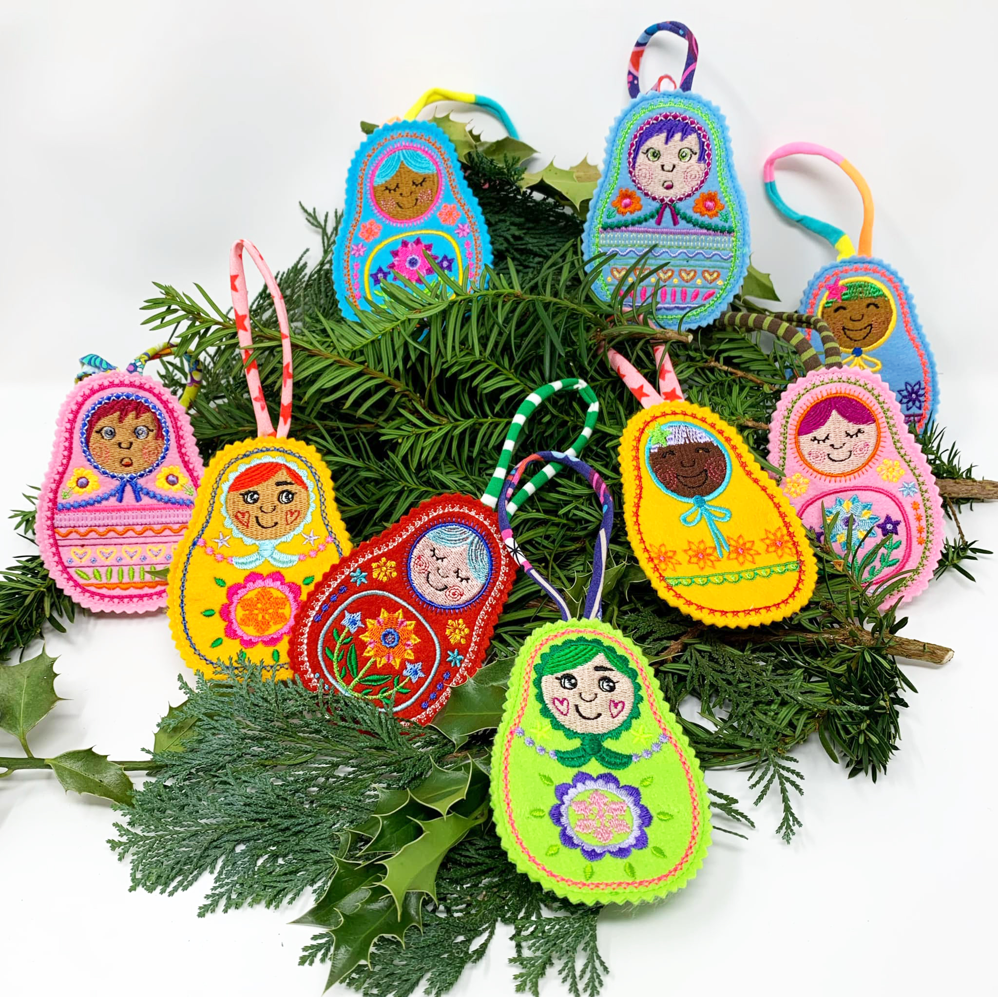 Diese Matroschkas sind fix für den Weihnachtsbaum gestickt, oder einfach als Taschenbaumler, Schlüsselanhänger …. also eigentlich für überall :o)