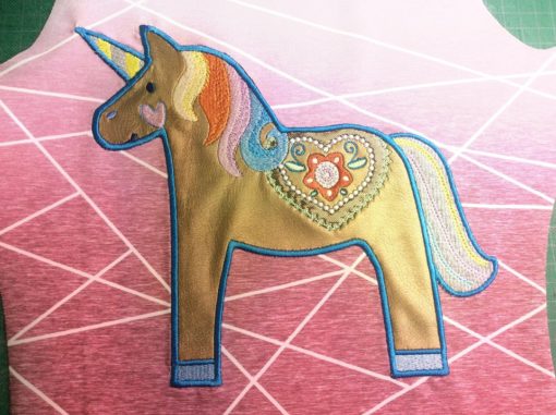 Ihr erinnert Euch sicher noch an die Stoffe aus der Einhornglück-Serie von der lieben Bine Brändle. Hier habe ich für Euch das Einhorn rausgesucht und als Applistick, umgesetzt.
