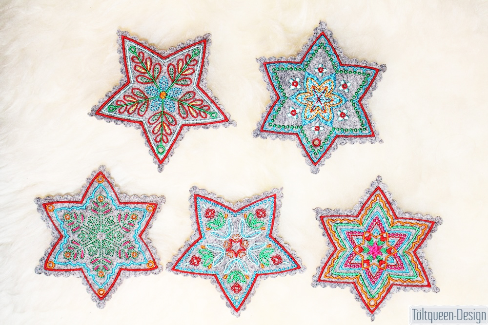 Durch die bebilderte Schritt-für-Schritt Anleitung, brauchen auch Stickanfänger keine Angst haben und werden im nu wunderschöne ITH Sternenbaumler zaubern können.
