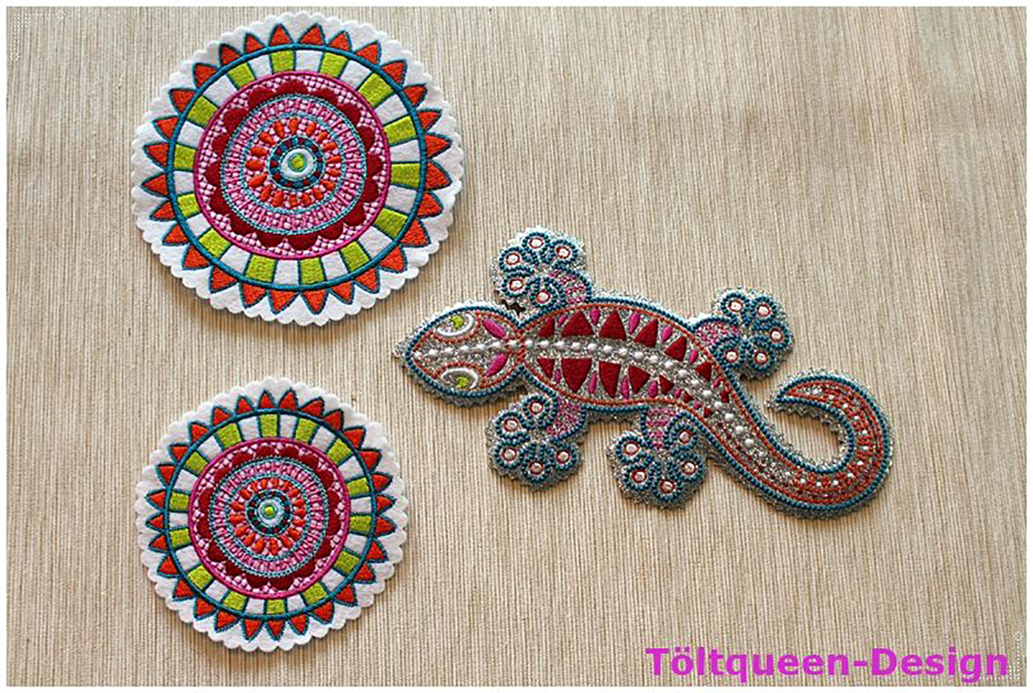 Hierbei handelt es sich um Stickdateien, keine fertigen Produkte. Ihr benötigt eine Stickmaschine um diese Produkte zu vollenden.